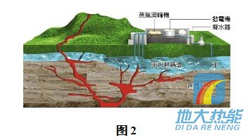 1)熱干巖過程法.與那些只從火山活動頻繁地區(qū)的溫泉中提取熱能的方法相比,熱干巖過程法將不受地理條件限制,可以在任何地方進(jìn)行熱能開采.首先將水通過壓力泵壓入地下4~6 km深處,此處巖石層的溫度大約在200℃左右.水在高溫巖石層被加熱后,通過管道加壓被提取到地面并輸入到熱交換器中,熱交換器推動汽輪發(fā)電機(jī)將熱能轉(zhuǎn)化成電能.同時推動汽輪機(jī)工作的熱水經(jīng)冷卻后可重新輸入地下供循環(huán)使用.這種地?zé)岚l(fā)電的成本與其他再生能源的發(fā)電成本相比是有競爭力的,而且這種方法在發(fā)電過程中不產(chǎn)生廢水、廢氣等污染,所以它是一種未來的新能源.